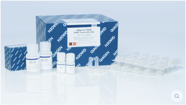 QIAamp DNA FFPE Tissue Kit專為從福爾馬林固定、石蠟包埋組織中純化DNA而設計。該試劑盒應用特殊的裂解方式脫離組織切片中的DNA,克服了福爾馬林交聯造成的抑制效應。試劑盒通過QIAamp MinElute離心柱純化高品質DNA,洗脫體積小。QIAamp DNA FFPE Tissue Kit可在QIAcube全自動核酸純化儀上自動純化DNA。